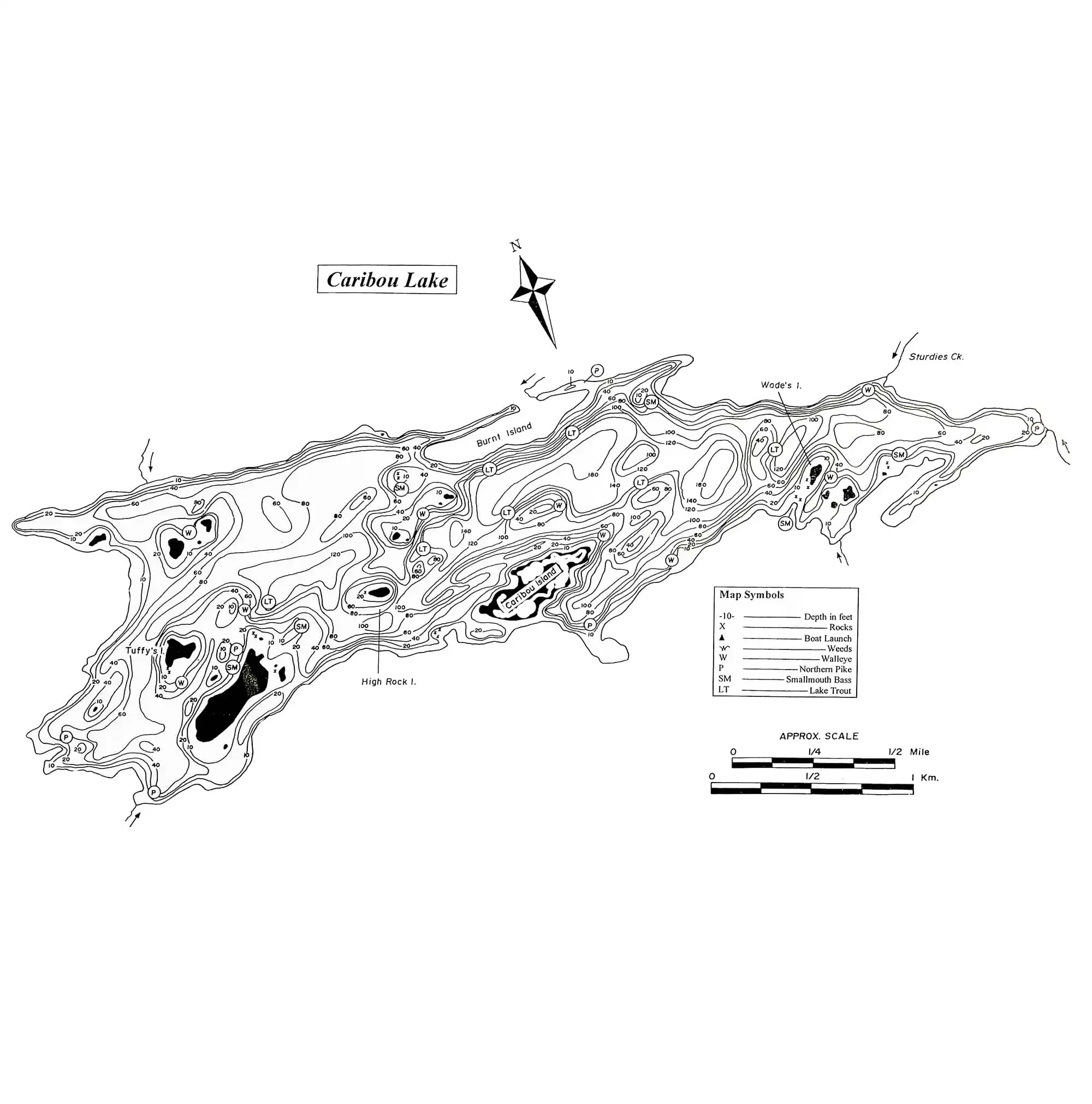 Big Caribou Lake is a quiet lake located in Loring Ontario. The most popular species caught here are Northern Pike, Walleye, and Lake Trout. A public boat launch is located very close to the lodge at the base of Big Caribou Lake Road.